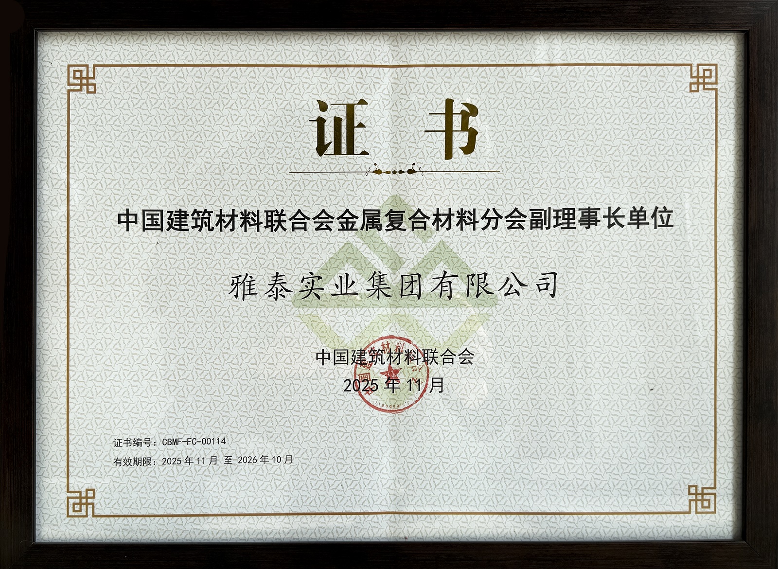 同時(shí),雅泰實(shí)業(yè)集團(tuán)作為幕墻行業(yè)優(yōu)秀的國(guó)內(nèi)老字號(hào)品牌,也長(zhǎng)年擔(dān)任著中國(guó)建筑材料聯(lián)合會(huì)理事、金屬?gòu)?fù)合材料分會(huì)副理事長(zhǎng)等角色。